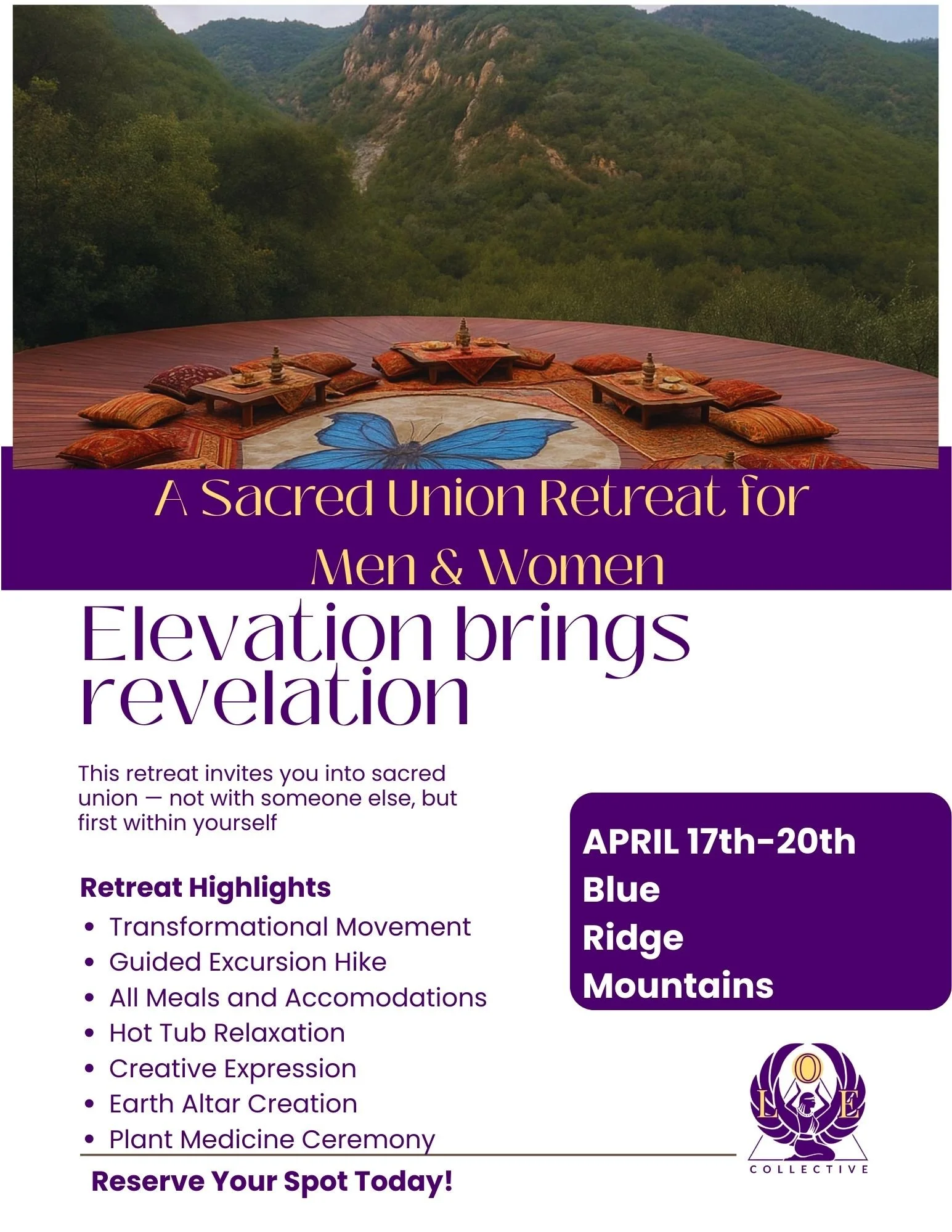Nestled in the quiet power of the Blue Ridge Mountains , this retreat invites you into sacred union — not with someone else, but first within yourself.